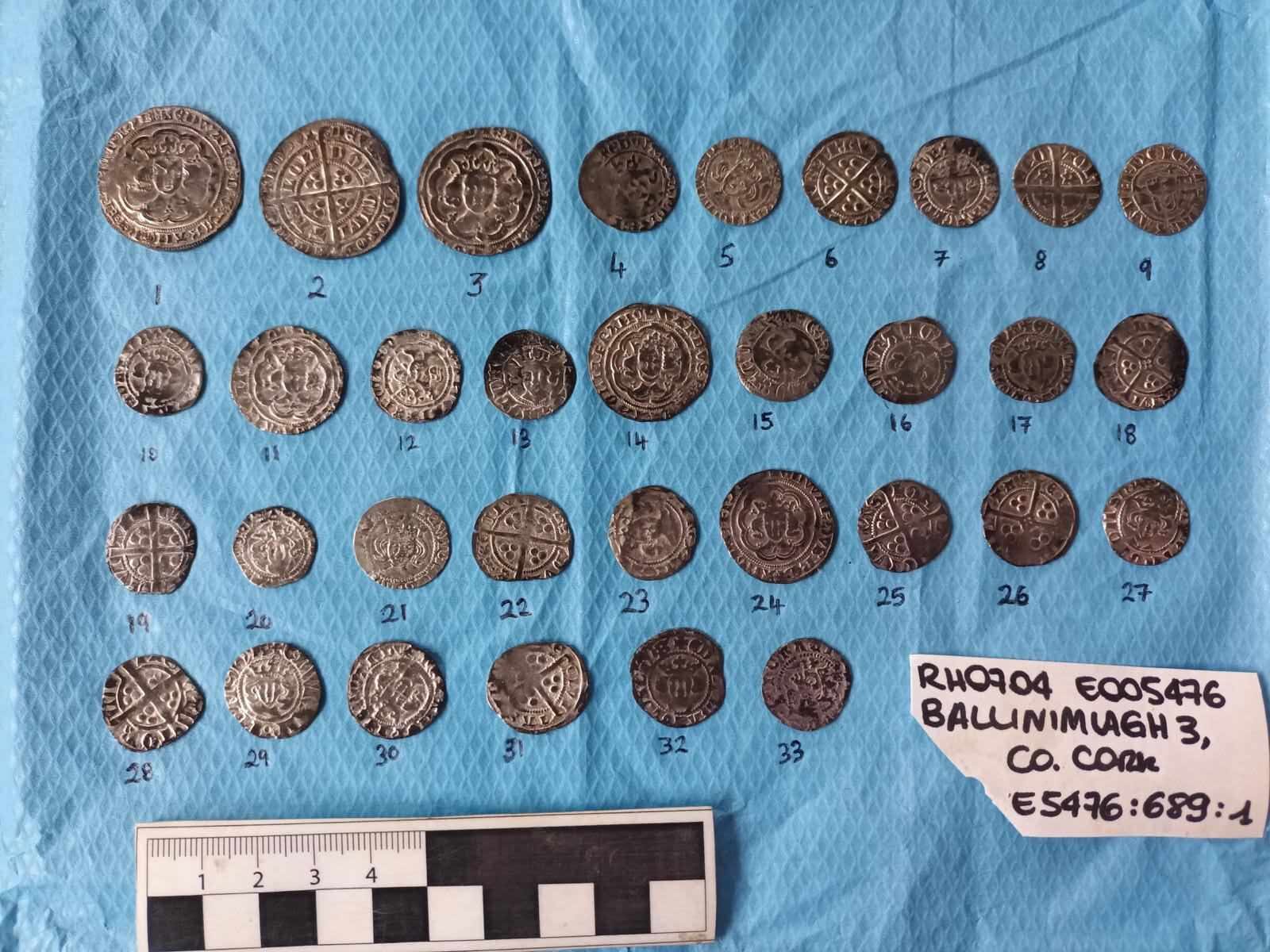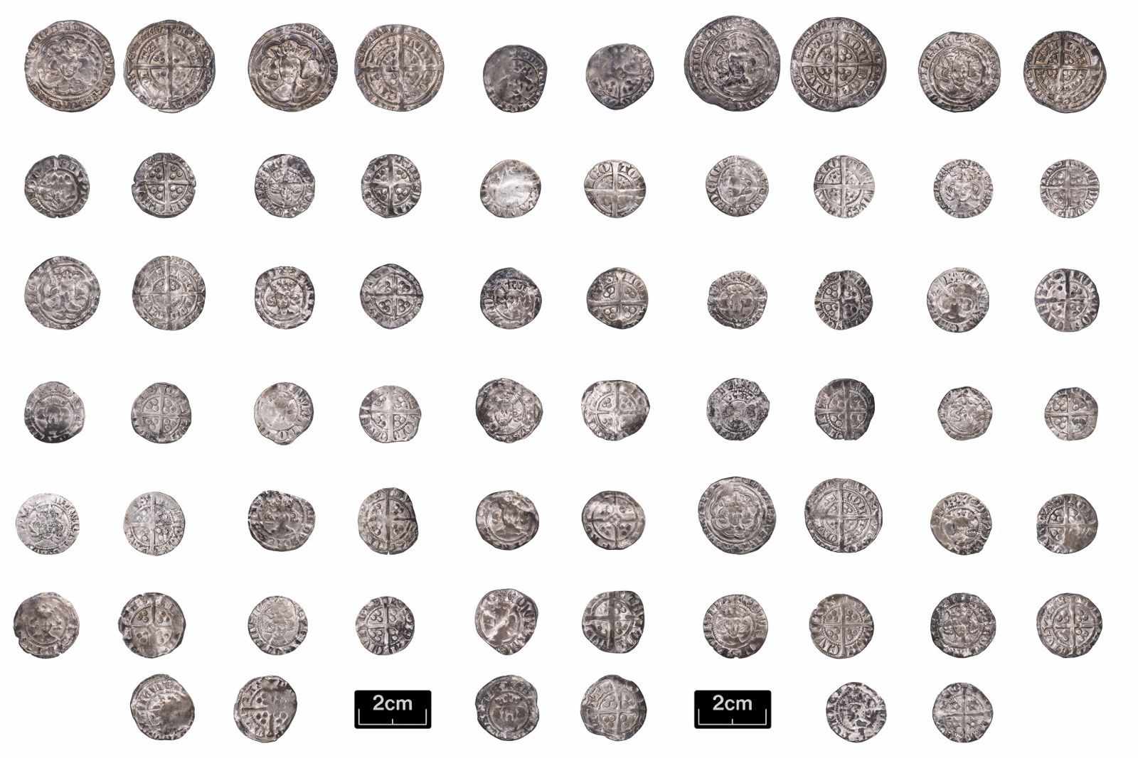 During archaeological investigations at the site, a hoard of 33 silver coins was discovered concealed within a boundary wall. The coins date to approximately 1351–1361 and include issues bearing the crowned facing busts of King Edward III of England and Alexander III of Scotland. Their presence reflects the widespread circulation of silver coinage during the medieval period, a time of active trade and political change across Britain and Ireland. The deliberate concealment of the coins suggests they may have been hidden for safekeeping, possibly during a period of unrest, and never recovered by their owner. This find provides valuable insight into medieval life, economy and connections within the region.
