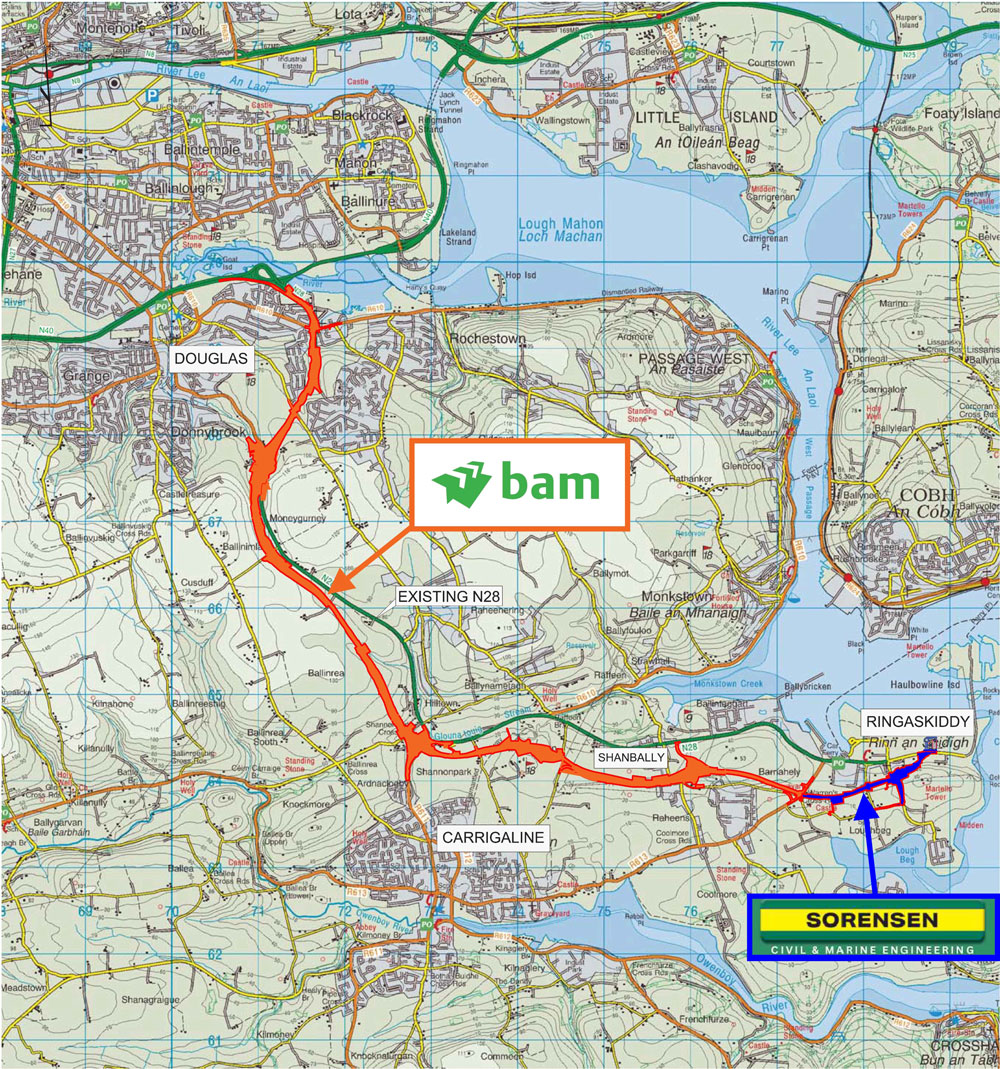 This vital infrastructure will deliver 11km of new motorway, enhancing connectivity between the Bloomfield Interchange and Barnahely. Funded by the Department of Transport through TII, the M28 Cork to Ringaskiddy Project will support the Port of Cork’s expansion at Ringaskiddy, ease congestion, and improve safety and journey times for commuters and commercial traffic. Expected to be completed by summer 2028, the project is part of the EU's Trans-European Transport Network and a key element of Project Ireland 2040.
